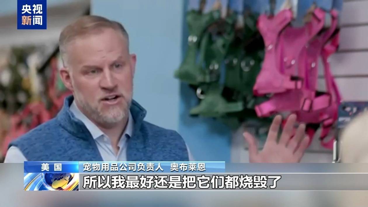 宠物用品公司负责人 奥布莱恩:现在我们海外工厂里,有价值15万美元的狗背带。按照目前的税率,我要花21.7万美元,才能把这些产品运回美国。所以我最好还是把它们都烧毁了,直接承担损失,而不是运回美国。