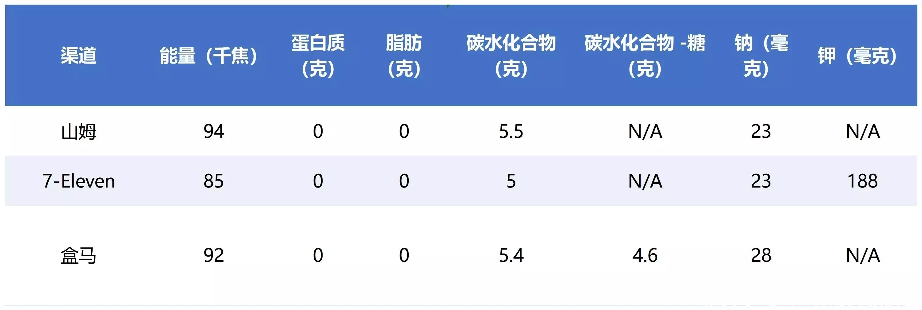 没有国家标准就意味着对钾、钠、糖等关键指标没有硬性规定,厂家可以毫无顾忌地使用便宜的老椰水。