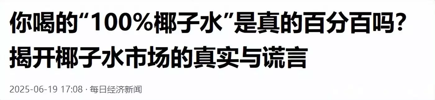 参考资料【1】每日经济新闻2025-06-19《你喝的“100%椰子水”是真的百分百吗?揭开椰子水市场的真实与谎言》