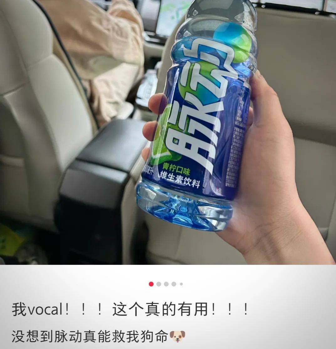 不仅抢了红牛的活儿,很多人分享,开长途喝脉动一样有红牛的效果。还抢了晕车药的存在感。“车主喝了提神,乘客喝了还缓解了晕车。”