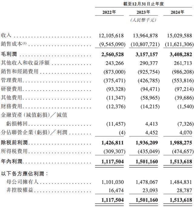 业绩方面,2022年、2023年和2024年,安井食品的营收分别约为人民币121.06亿元、139.65亿元和150.30亿元,毛利分别约为25.61亿元、31.57亿元和34.08亿元,净利润分别约11.18亿元、15.01亿元和15.14亿元。
