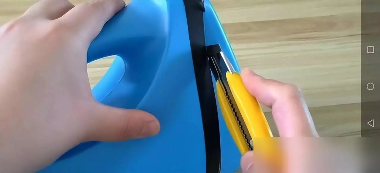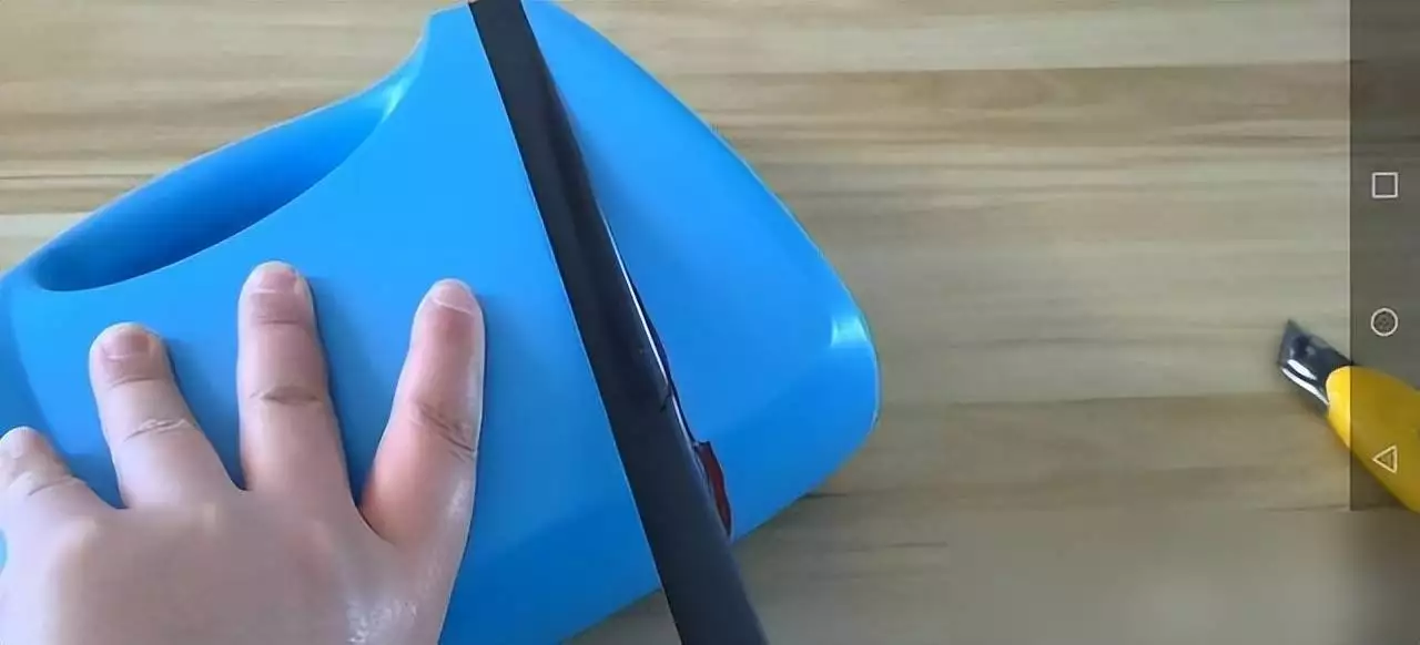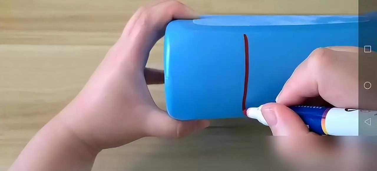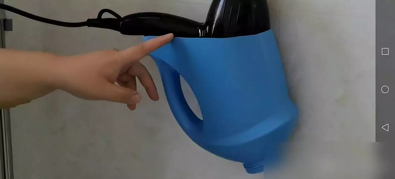 就像网友@美食格物分享的教程:挑个1.5升以上的空桶,用胶带绷直划线,壁纸刀沿边剪开,修剪毛刺后固定在墙上,秒变卫生纸收纳盒,底部还能盖盖子防溅水;吹风机、沥水小物往里头一塞,潮湿、异味全解决。