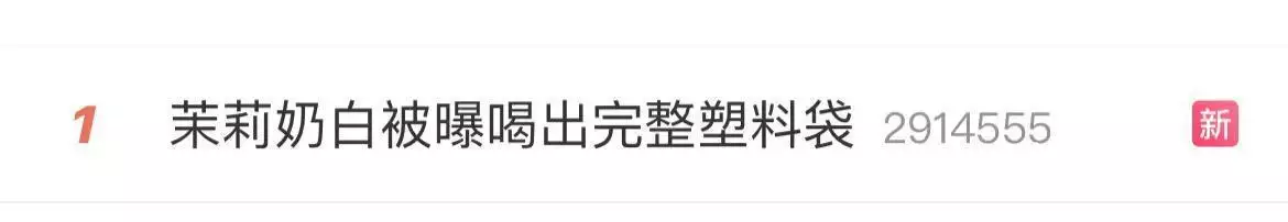 3月23日,有上海的消费者发帖投诉称,在茉莉奶白的奶茶中发现一个塑料袋。同日,#茉莉奶白被曝喝出完整塑料袋#话题登上微博热搜第一。