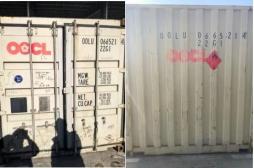 装载UN 3175危险货物的集装箱,其侧面UN编号标记严重破损,数字无法辨认,违反了IMDG规则第5.3.1.1.1.2中标牌和标记应清晰可辨的要求。