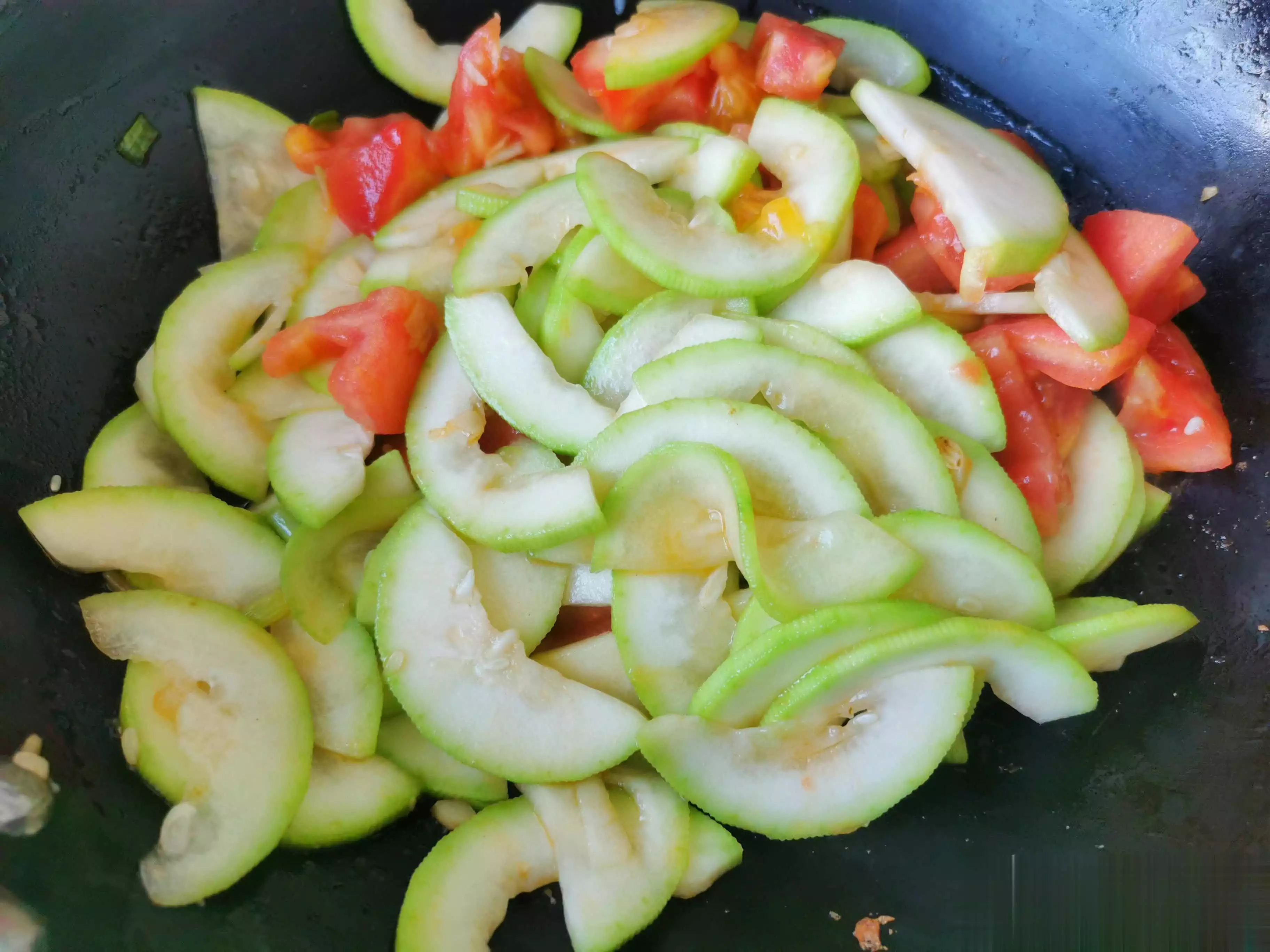 主要食材:瓠子1个,番茄1个,鸡蛋1个,粉丝50克,香葱1根,大蒜2个,盐适量,食用油适量,香油一勺,淀粉水适量