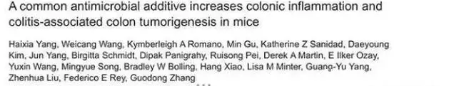 麻省大学曾做过相关研究,结果显示小鼠在接触低剂量三氯生后,会增加罹患结肠炎和肠癌的风险。