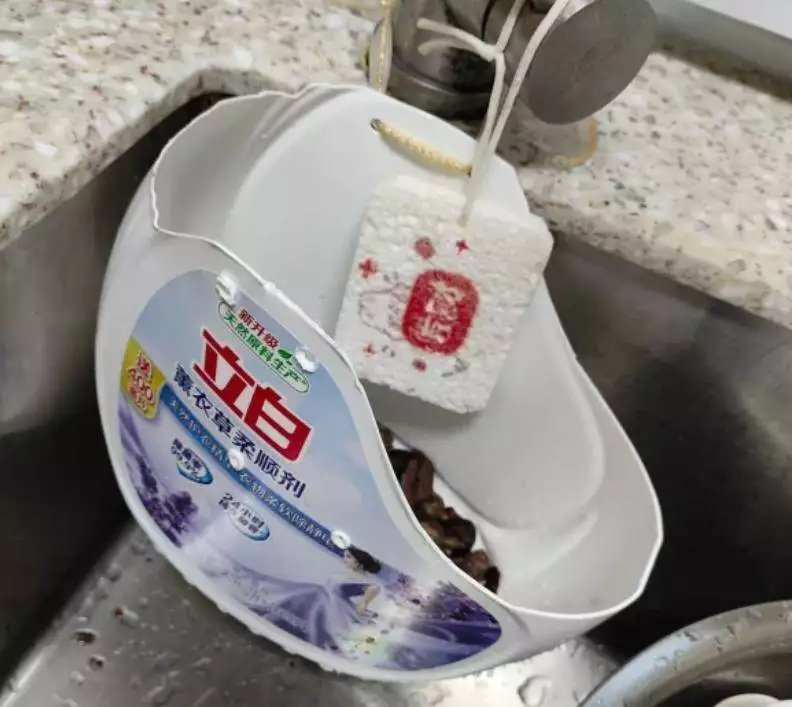 空洗衣液桶改造的沥水盒能让厨房整洁又实用。