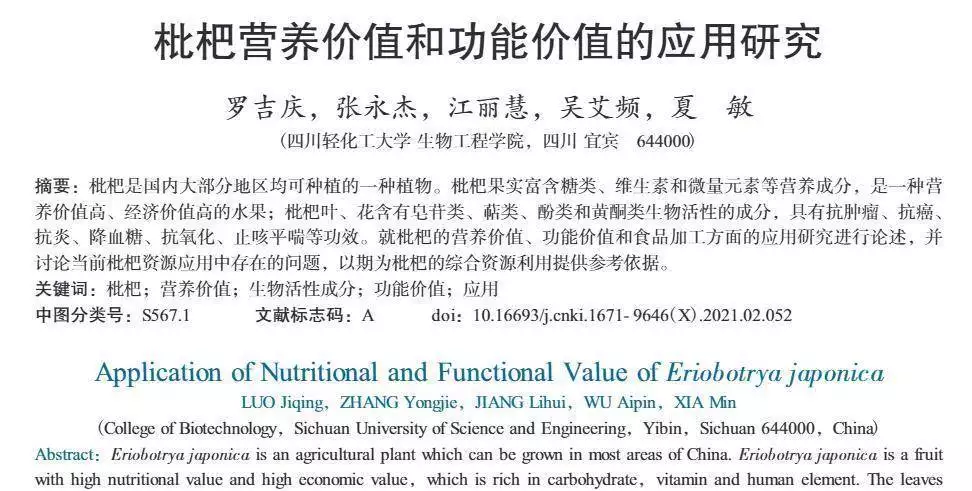 [1]罗吉庆,张永杰,江丽慧,等.枇杷营养价值和功能价值的应用研究[J].农产品加工,2021,(04):83-87.