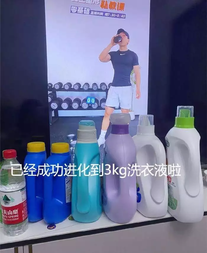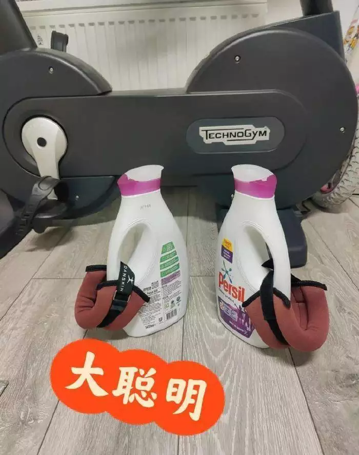 在家里健身,不需要准备一大堆健身器材,只要达到身体健康的目的就可以了,买健身哑铃其实没有必要,因为家里的洗衣液就可以充当。