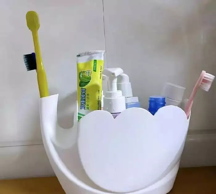可以放在卫生间用来收纳牙刷牙膏,还可以放在梳妆台,收纳化妆工具,带有一个把手,所以使用起来会更加方便。