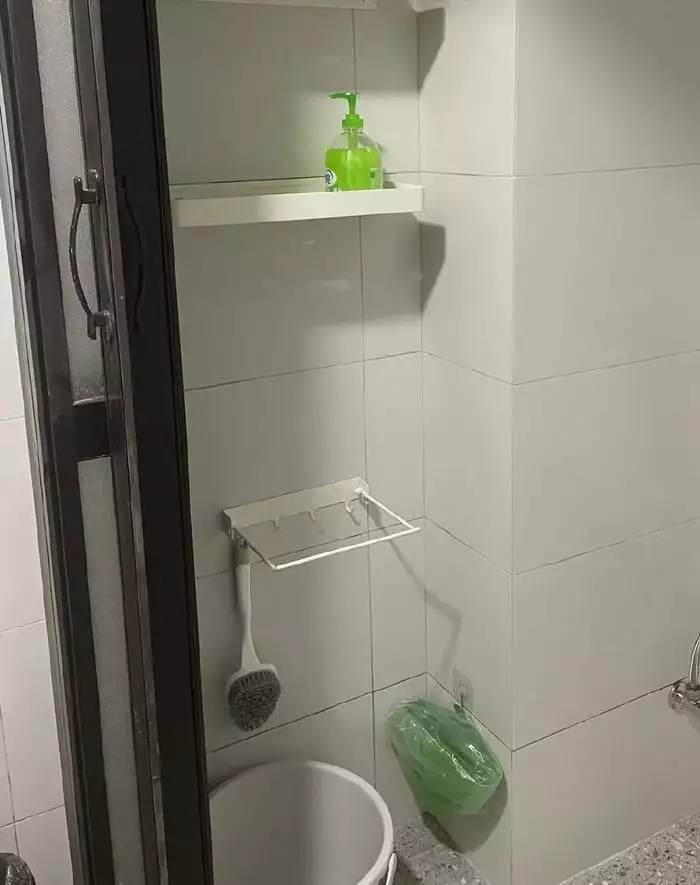 小卫生间就这样改造一个墙上垃圾桶,省地方还省钱,很方便。
