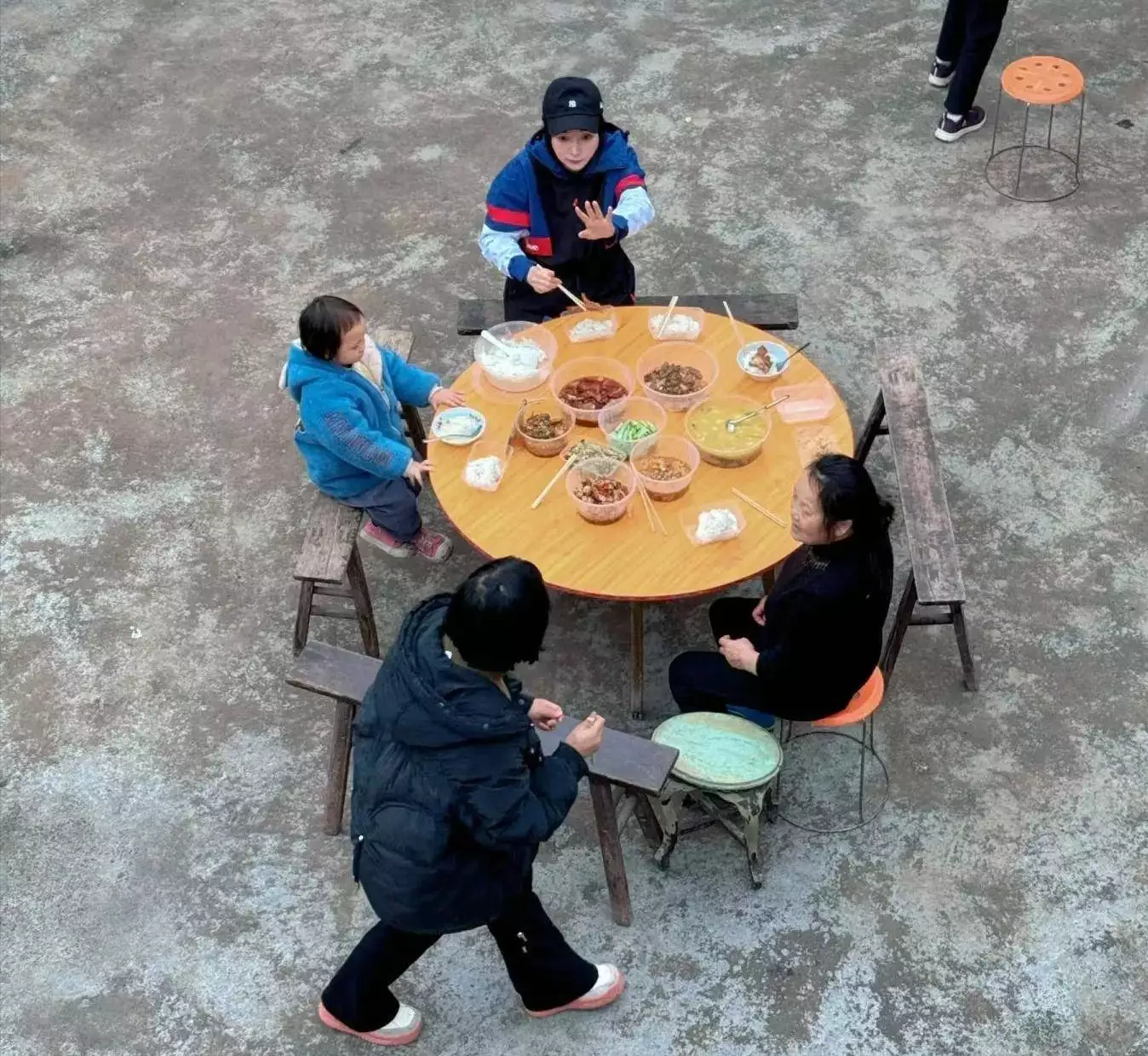 最绝的是爬墙头那张——抱着小侄女,爬上墙头,看着墙外的乡亲,聊天聊得停不下来。有老乡偷笑着爆料:"岩妹子打小就实诚,现在赚大钱了,回家照样帮嫂子喂猪哩!"
