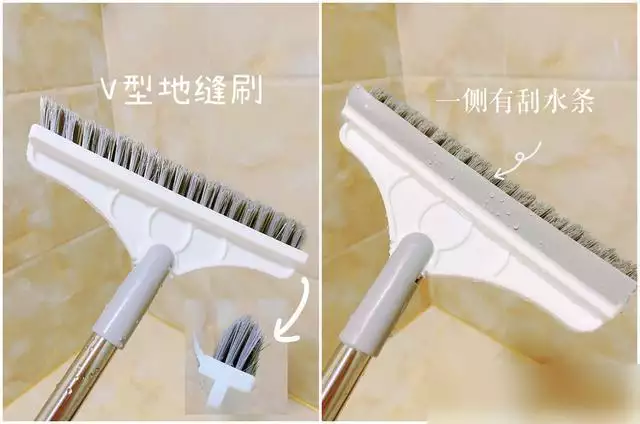 波纹浴刷软硬适中,搓背不求人;地板缝隙刷配刮水条,墙角污垢一刷即净。