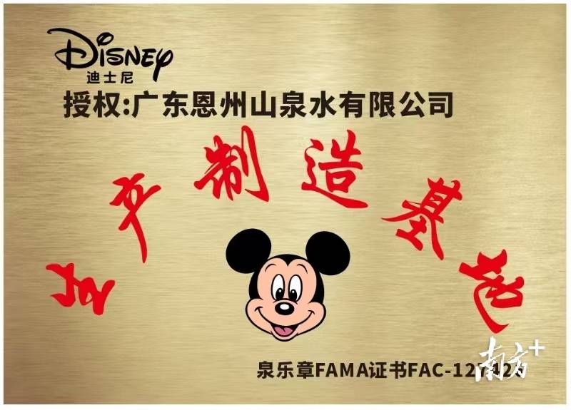 6月27日,迪士尼系列饮用天然水生产制造基地落户恩平。该饮用水由广东恩州山泉水有限公司(下称“恩州山泉水公司”)生产提供,年供货量500万箱共1.2亿支。其中500ml容量的瓶装水为迪士尼卡通联名款,瓶身将印有米奇、米妮等大众喜爱的IP形象,预计今年9月上市。