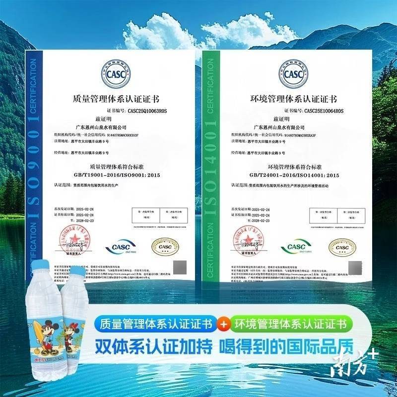 据了解,该迪士尼系列饮用天然水的水源地位于恩平市大田镇,系锦江河上游,辖区内有锦江河、朗底河等河流以及珠三角最大的水库锦江水库,水库周边无居民居住,属于保护区和水源保护地,水质持续达到地表水Ⅱ类及以上标准,是生产饮用水产品的优质水源地。