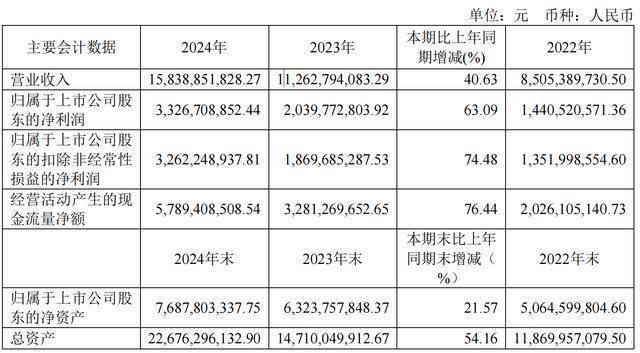财报显示,2024年,东鹏饮料实现营业收入158.39亿元,同比增长40.63%;归母净利润33.27亿元,同比增长63.09%;经营活动产生的现金流量净额57.89亿元,同比增长76.44%;归属上市公司股东的净资产76.88亿元,同比增长21.57%。东鹏饮料称,主要是报告期内公司的销售规模和效益保持高速发展,销售商品的现金大幅增加所致。