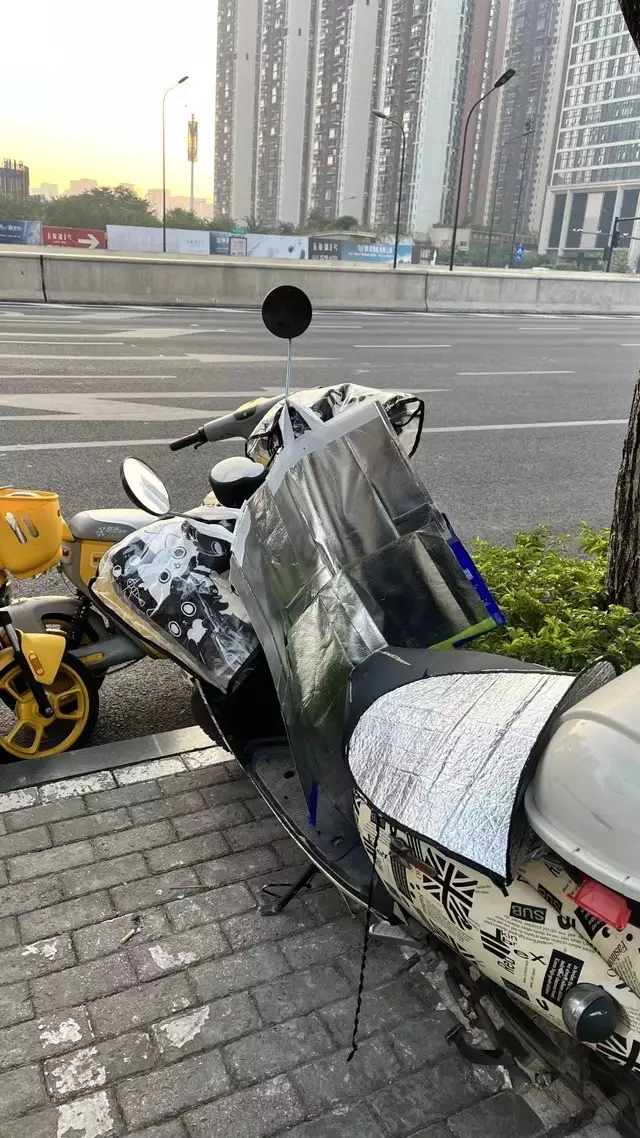 于是有人想到了一个好主意,把电动车的把手分别套上一个外卖保温袋,这不就起到了保暖还挡风的作用了嘛!