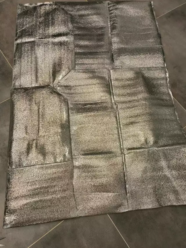 把这些大大小小的铝箔保温袋拼起来,简单的方法就是互相用针线缝合,然后你就得到一个解散垫子,话说这不就省了大几块钱吗?
