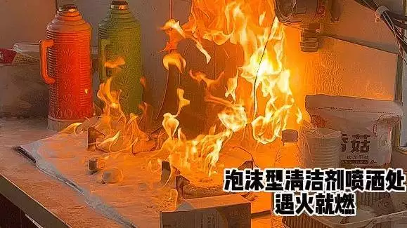 工业清洁剂相较于家用清洁剂,它的去污能力更强,所含的可燃成分也更多,遇明火极易燃烧。大家切记不能因工业清洁剂去污能力强就挪至家用。