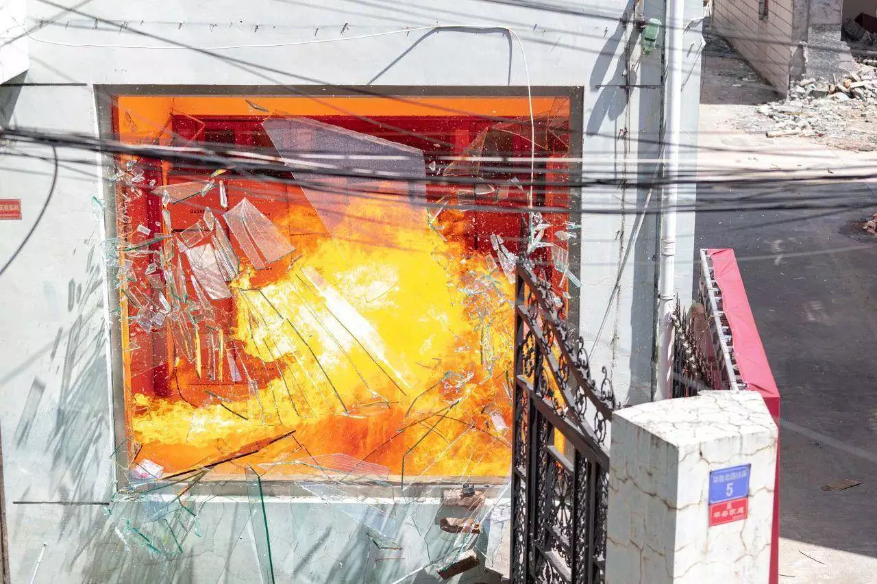 △浙江宁波慈溪市消防救援大队开展“清洁剂实验”时的燃烧场面。