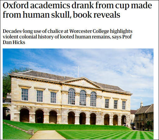 除了牛津大学外,希克斯的新书还揭露了包括英国王室在内的许多殖民者热衷于收藏殖民地原住民头骨的习惯,为揭露英国殖民史的残暴本质增添了新的证据。