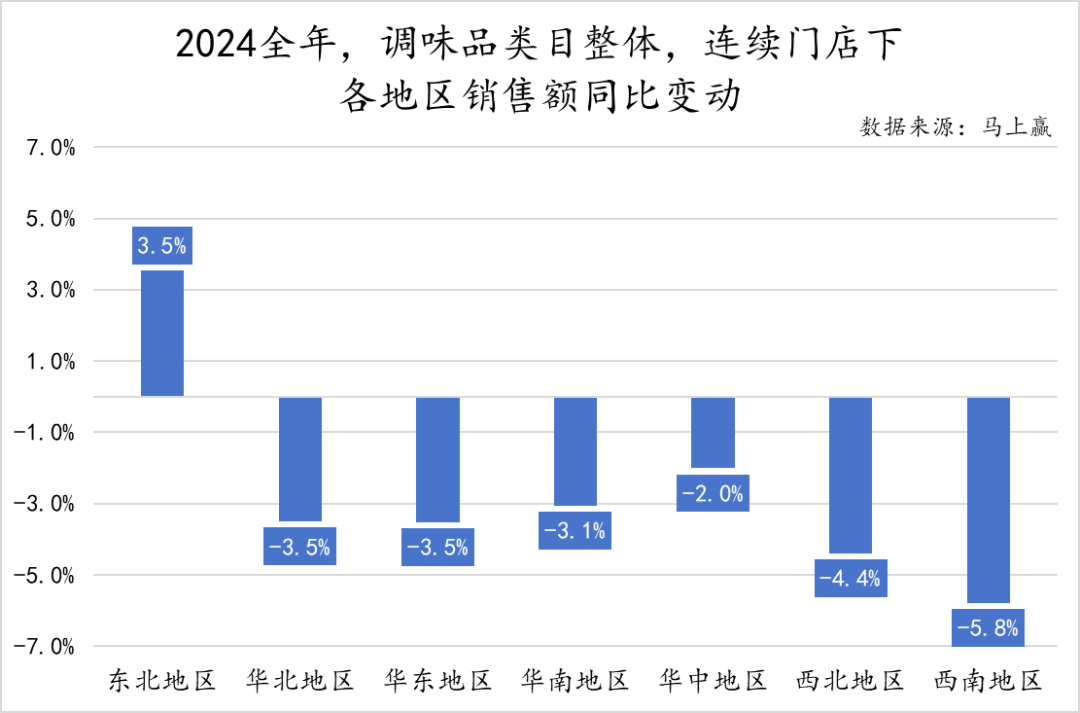 从区域维度分析,大部分区域的销售额同比出现下降。但值得特别关注的是,东北地区的市场数据在一众负向增长中脱颖而出,销售额提升达到3.5%。