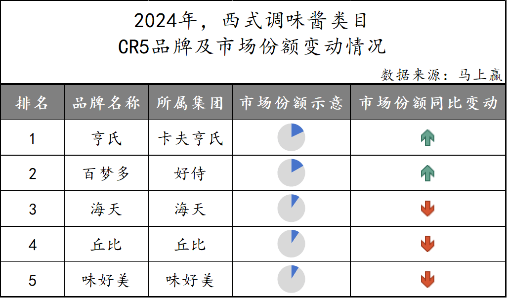 基于市场份额的分布看,卡夫亨氏与好侍两大西式调味酱行业龙头市场份额不相上下且同比均有所增长,其间竞争较为激烈。而海天、丘比和味好美三大企业的市场份额相对更小一些,彼此间的差距同样也较小,在同比均有一定程度下滑的情况下,如何稳固自身市场份额对其而言尤为重要。