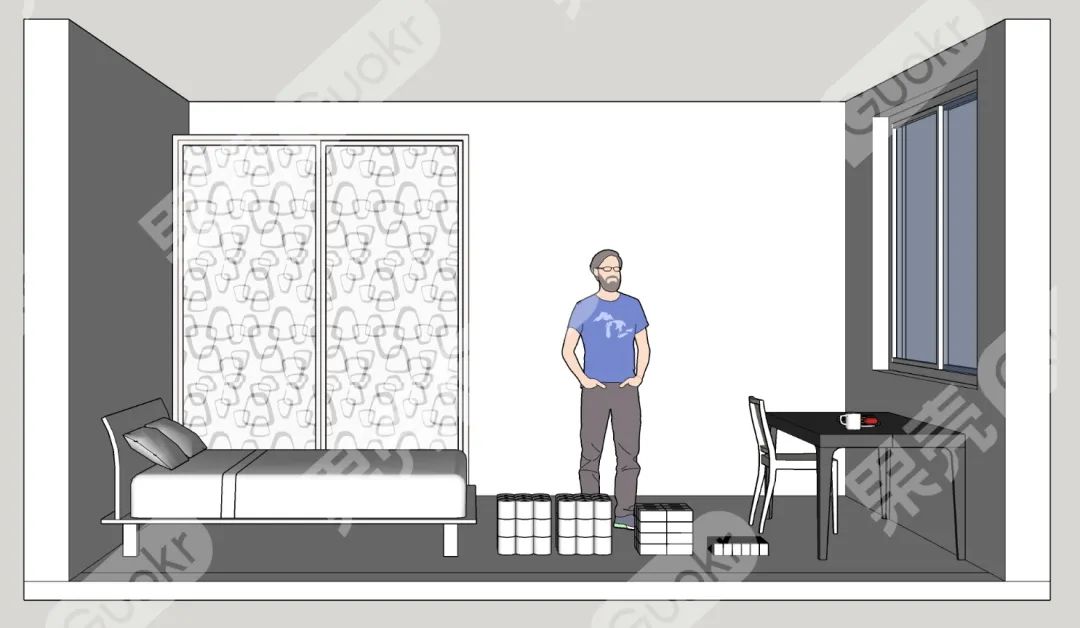 为了让你看得更直观,我们模拟了一个占地15平米、层高3米的屋子(是不是非常宽敞!)。