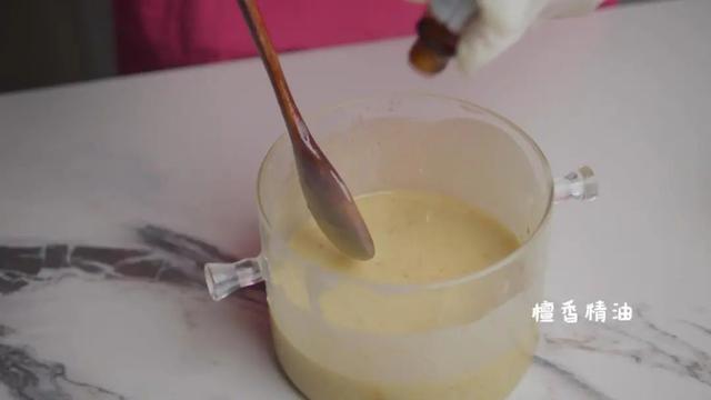 3.加入红橘皮粉后混合均匀,滴入檀香精油。