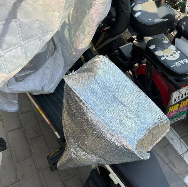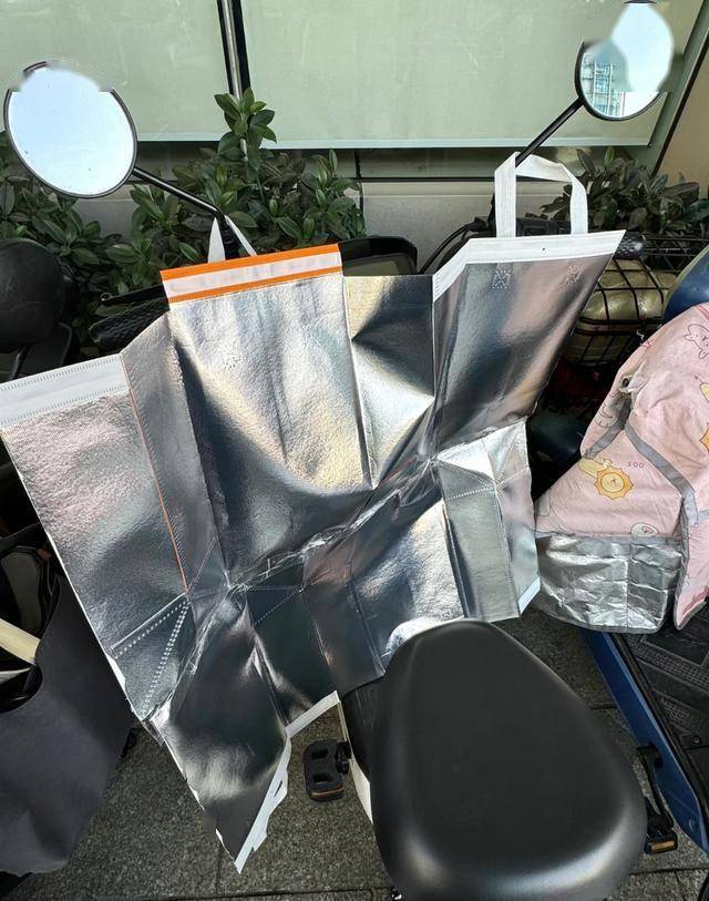 家里如果有闲置的保温袋,可要利用起来啊,直接套在座位上,就能起到很好的防烫作用,万一临时下雨,也不担心座位被淋湿呢。
