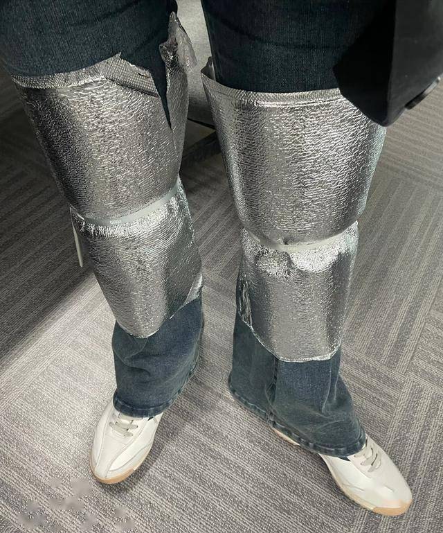 还有更猛的,突然降温,新买的护膝还没到,直接将保温袋绑腿上,这不就是简易版护膝嘛。
