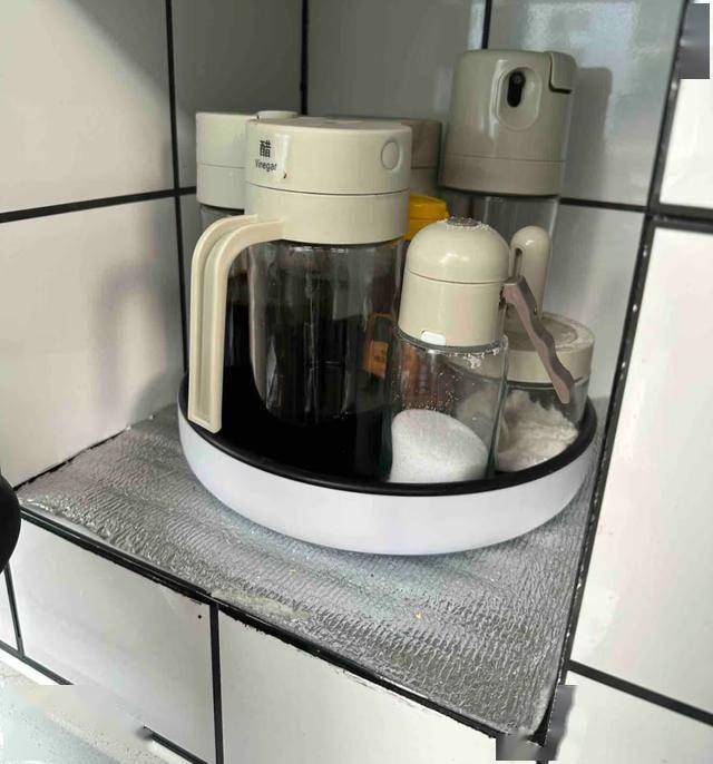 橱柜里也是一样的,铺上一层,调味品倒了都没事儿,直接一擦就干净,对柜子有很好的保护作用。